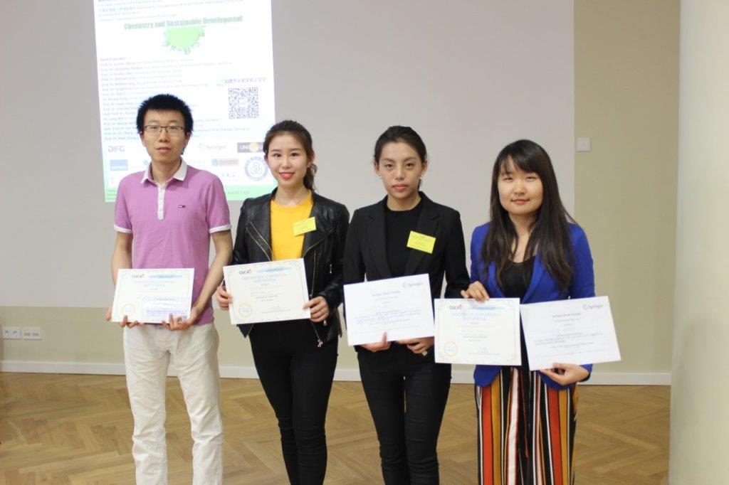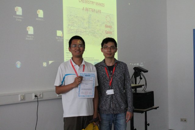 林树(左)和27届年会组委会主席朱庆夫合影 2014年留德华人化学化工学会墙报奖得主 为增加年轻学者展示工作成果的机会以及加强人才间的直接交流与互动,从2014年起年会新增墙报环节,并设置了年会墙报奖,由参会人员不记名投票产生获奖者。