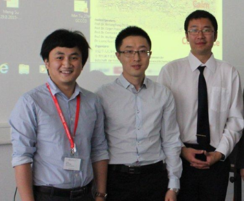从左到右;周腾,刘陆平,何欣 专家评审团: Prof. Dr. Christoph Janiak (University of Duesseldorf),Dr. Lucio Colombi Ciacchi (University of Bremen), Dr. Roland Roth (University of Tuebingen). | |||||||